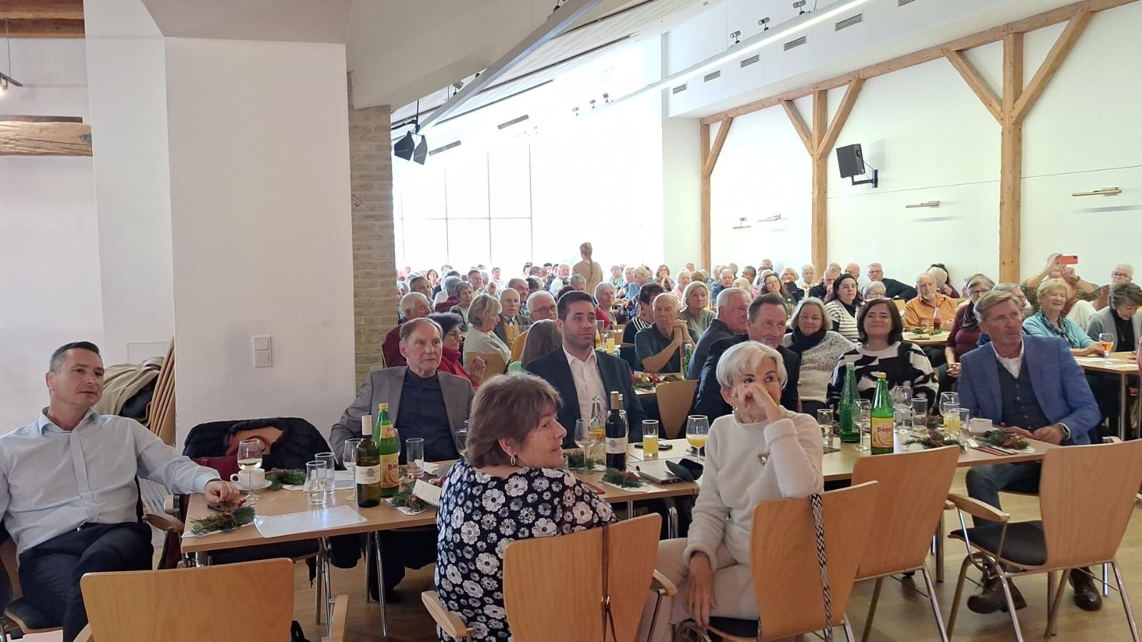 „Advent – welche Erinnerungen sind mit diesem einen Wort verbunden. Mutter richtete jedes Jahr liebevoll die festliche Porzellanschale her. Orangen, Äpfel, Nüsse und immer einige grüne Tannenzweige fanden darin Platz. Wir Kinder saßen ehrfurchtsvoll davor und unsere Augen leuchteten mit der ersten Kerze, die Mutter anzündete, um die Wette. Die Vorfreude auf Weihnachten brannte wie ein Feuer in unseren Herzen. Der Advent ist eine besinnliche Zeit, die von innerer Einkehr, Ruhe und Nachdenken geprägt ist. Alles, was in den Bereich der schönen Künste fällt, hilft dabei, in der Vorweihnachtszeit Ruhe zu finden. Und darum freuen wir uns heute ganz besonders auf die musikalische Darbietung des heutigen Nachmittages. Das PVÖ-Team Hornstein wünscht allen lieben Gästen hier im Saal unterhaltsame und rhythmische Stunden und eine stresslose und besinnlich schöne Adventzeit“