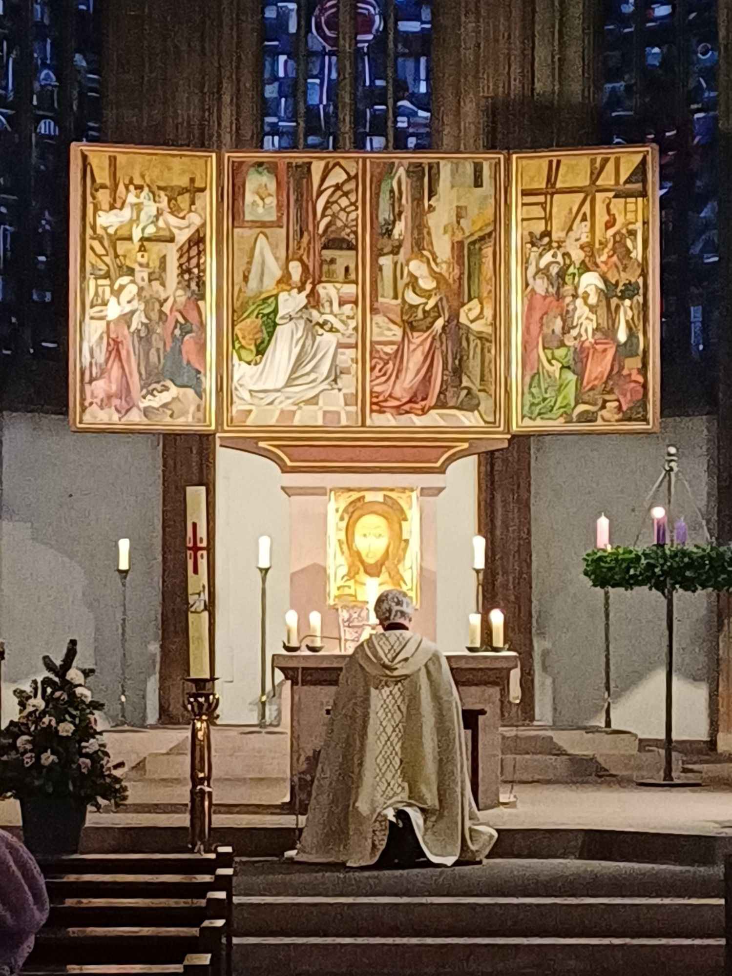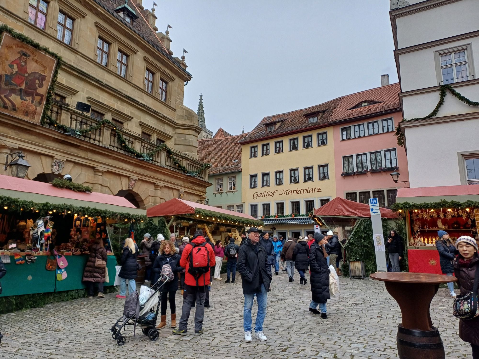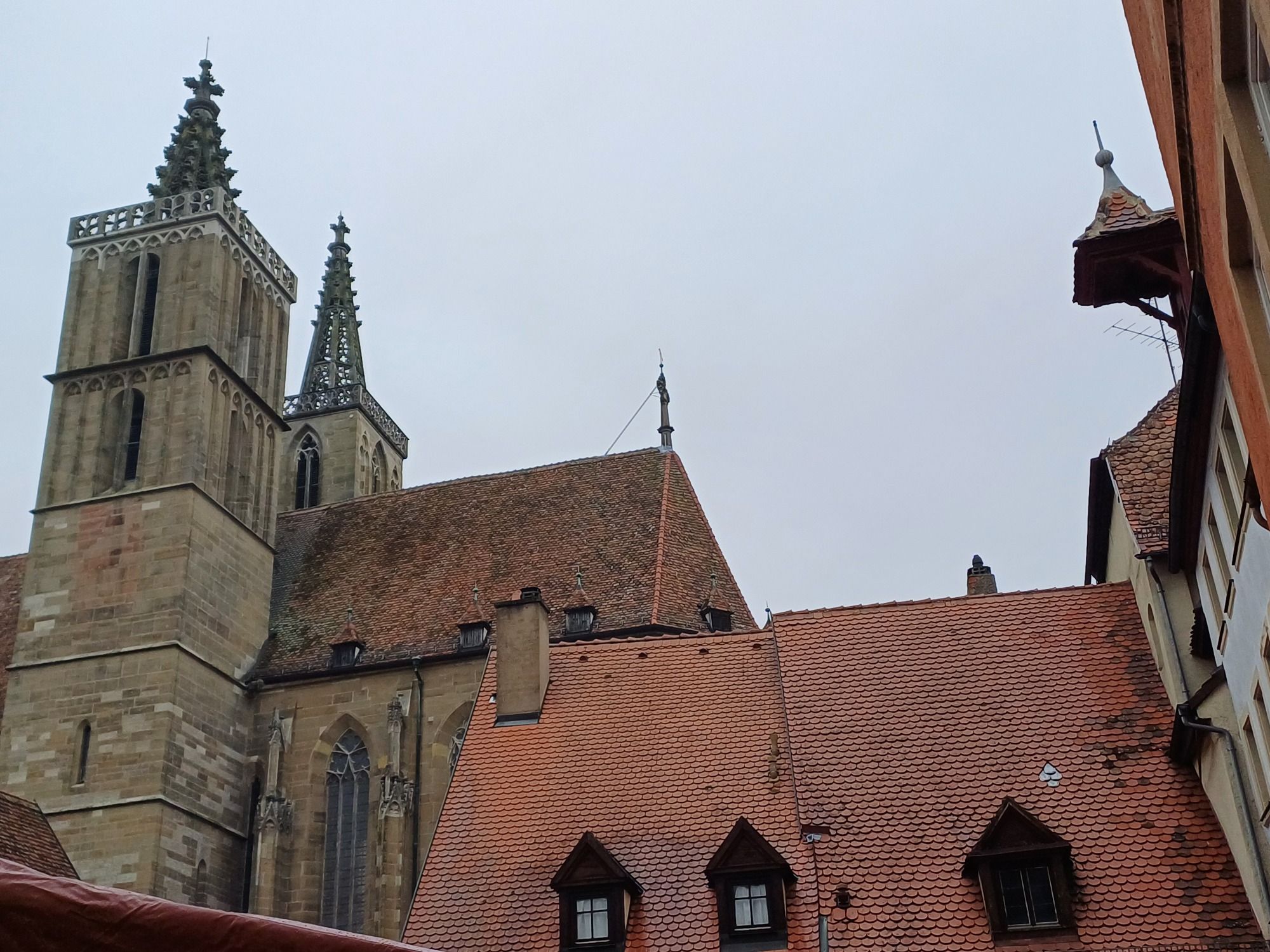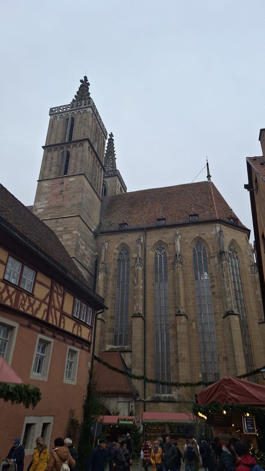 Die gotische St.-Jakobs-Kirche beherbergt auf der Westempore das wohl wertvollste Kunstwerk dieser Stadt, den Heilig-Blut-Altar von Tilman Riemenschneider. Manche sehen in ihm auch den eigentlichen Auslöser des Tourismus, da schon im frühen Mittelalter die Pilger auf ihrem langen Weg nach Spanien hier Rast machten. Von Rothenburg ob der Tauber sind’s noch 2.463 Kilometer bis Santiago de Compostela!