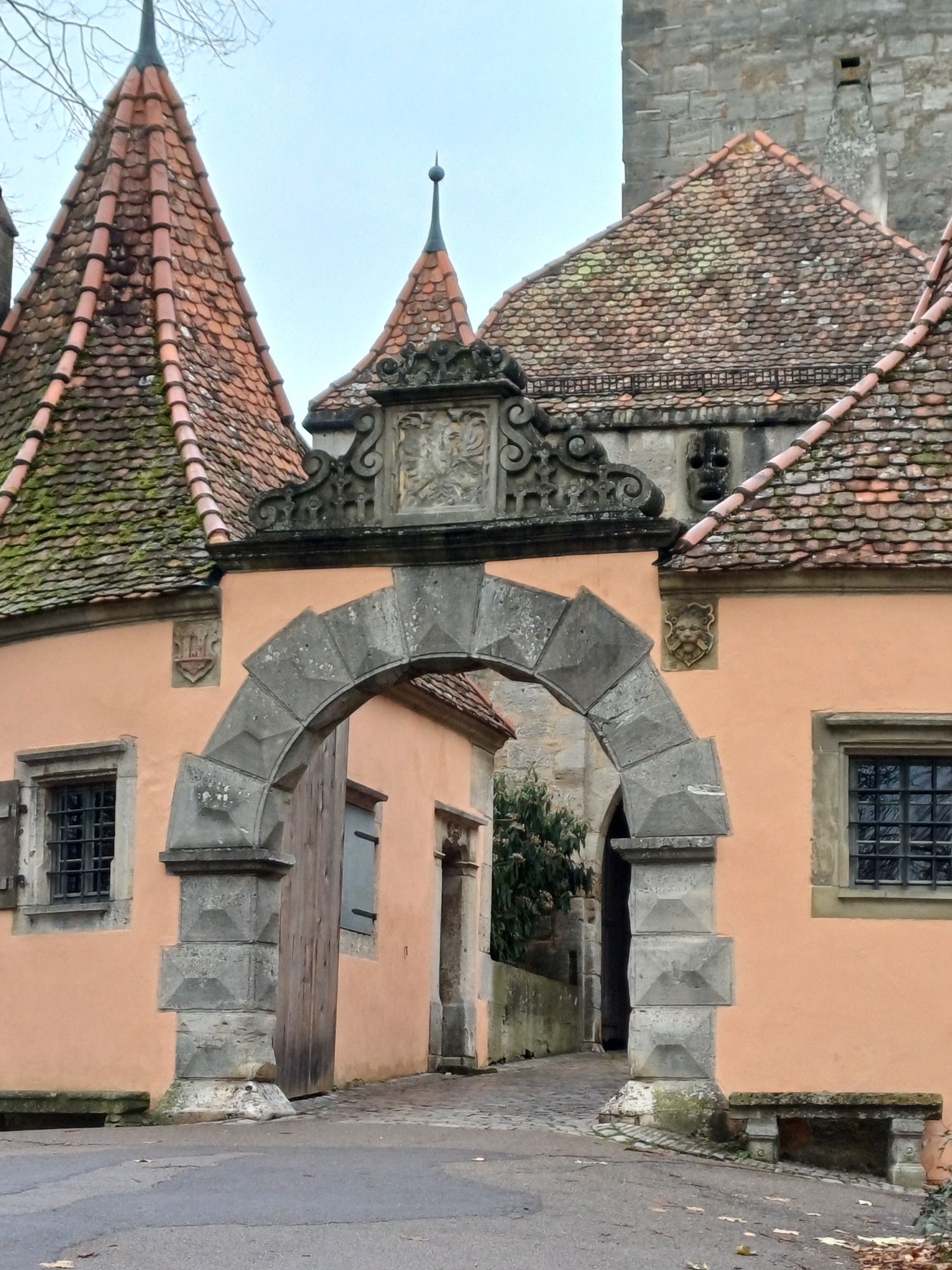 Zum historischen Plönlein-Ensemble gehören auch der Brunnen vor dem Fachwerkhaus sowie die zwei Türme der Stadtmauer, die zu beiden Seiten aufragen: Links der Siebersturm, der ins Spitalviertel führt, und rechts der Turm des Kobolzeller Tores aus dem Jahr 1360, der Richtung Taubertal weist.