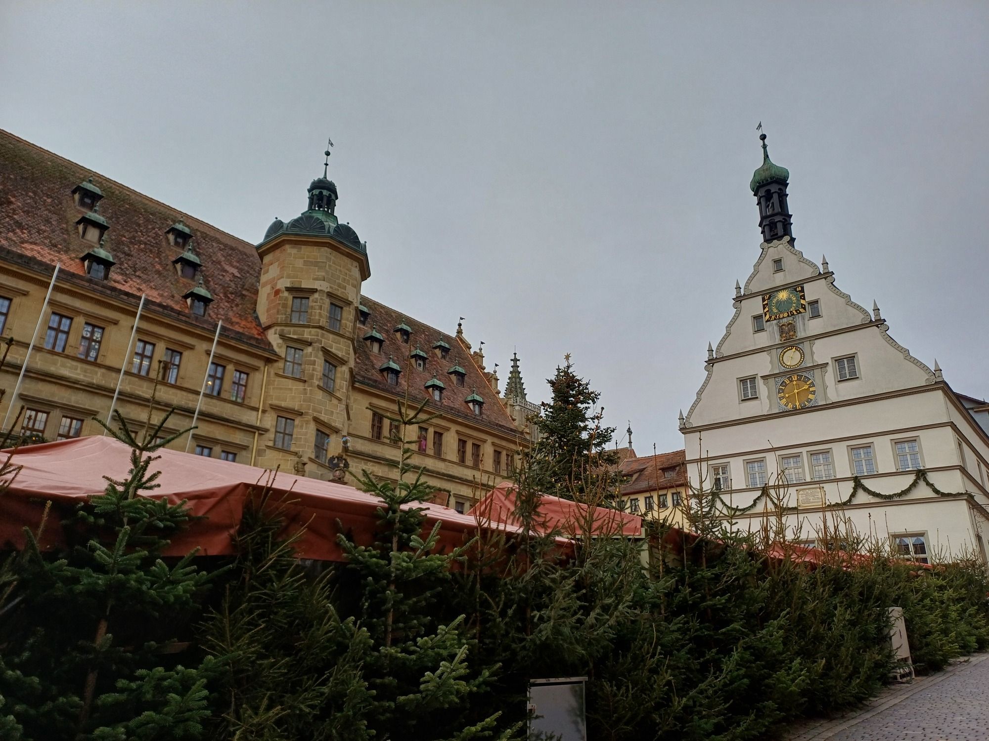 Nach dem Gang durch die engen Altstadtgassen von Rothenburg ob der Tauber trifft man urplötzlich auf das Zentrum der Stadt, den Marktplatz mit seinem gigantischen Rathaus. Das ganze Ensemble drückt den einstigen Bürgerstolz der Rothenburger Bevölkerung aus. Mit seiner Schautreppe und der Renaissance-Fassade wirkt das Rothenburger Rathaus zwischen der umgebenden Fachwerkromantik umso mehr wie ein monumentaler Schlossbau. In Rothenburg gab man sich zudem mit einem Ratskeller nicht zufrieden – hier thront die imposante Ratstrinkstube über dem Marktplatz.
