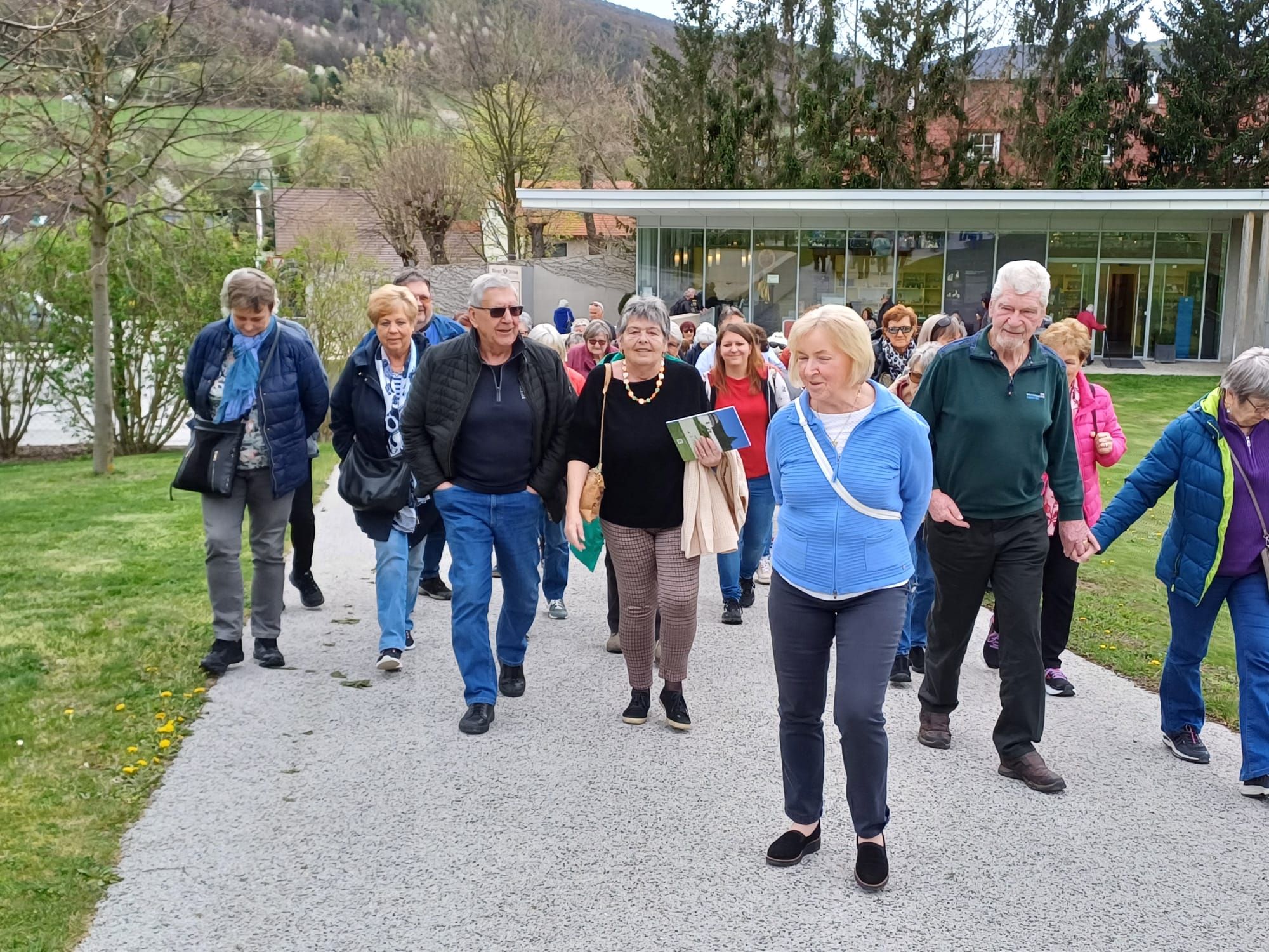 Im Eingangsbereich des Besucherzentrums wurde die Hornsteiner PVÖ Gruppe von einer Führung empfangen, diese begann die Tour in der Parkanlange des ehemaligen Jagdschlosses.