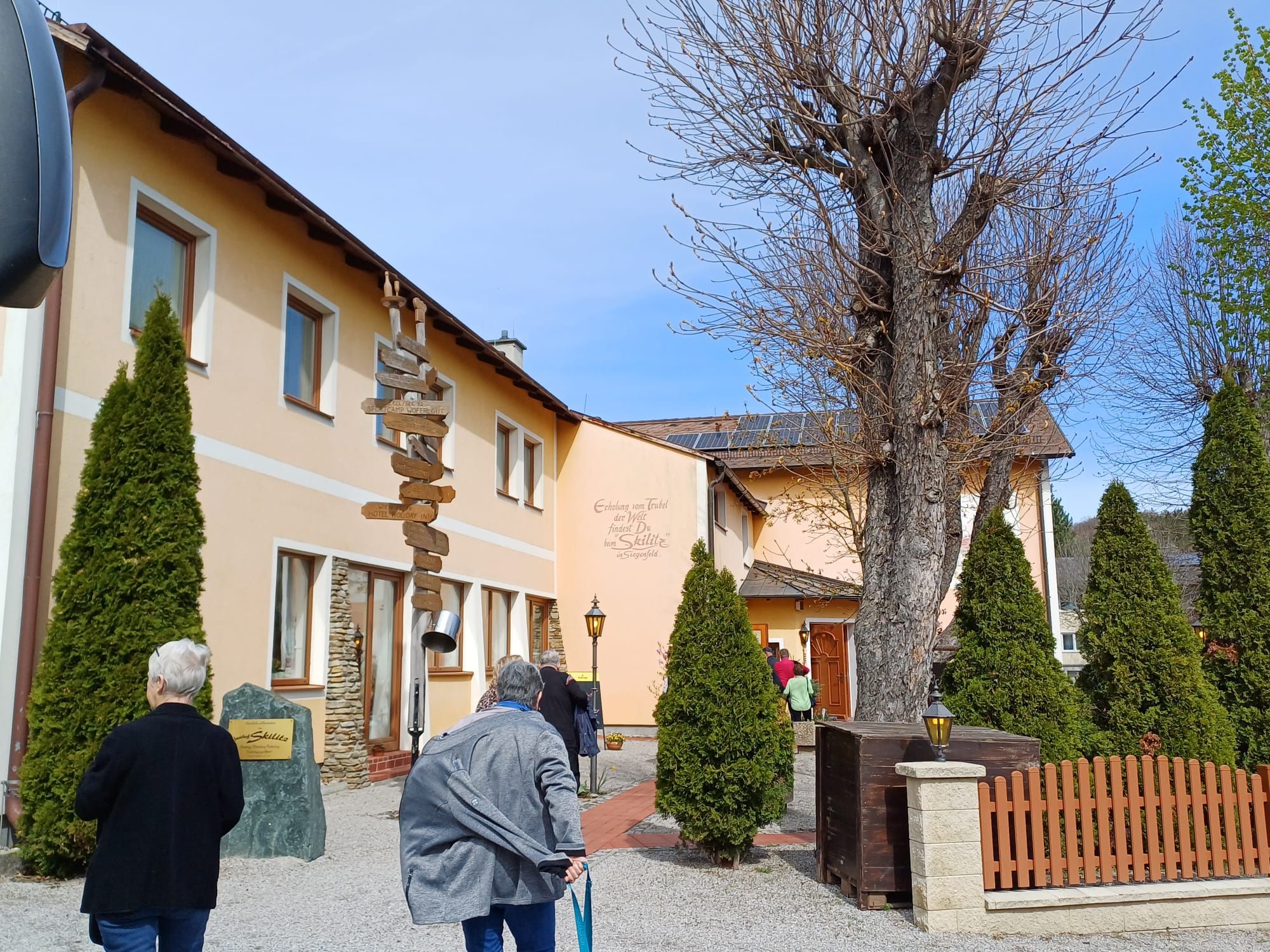 In der Nähe von Baden am Ausgang des Helenentales gegen das romantische Tal von Gaaden zu, liegt die kleine Ortschaft Siegenfeld. Dort, im schönen und gemütlichen Gasthof Skilitz, nahmen die Hornsteiner Gäste ein hervorragendes 3-gängiges Mittagsmahl ein. Das leckere Essen, ein kulinarischer Genuss, ließen sich die Hornsteiner Gäste schmecken. Um 14.15 Uhr war es Zeit die Zelte in Siegenfeld abzubrechen und zur zweiten Hauptattraktion des Tages, in den Karmel nach Mayerling zu fahren.