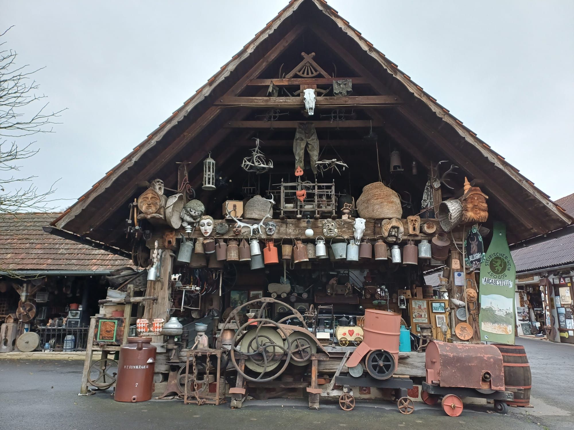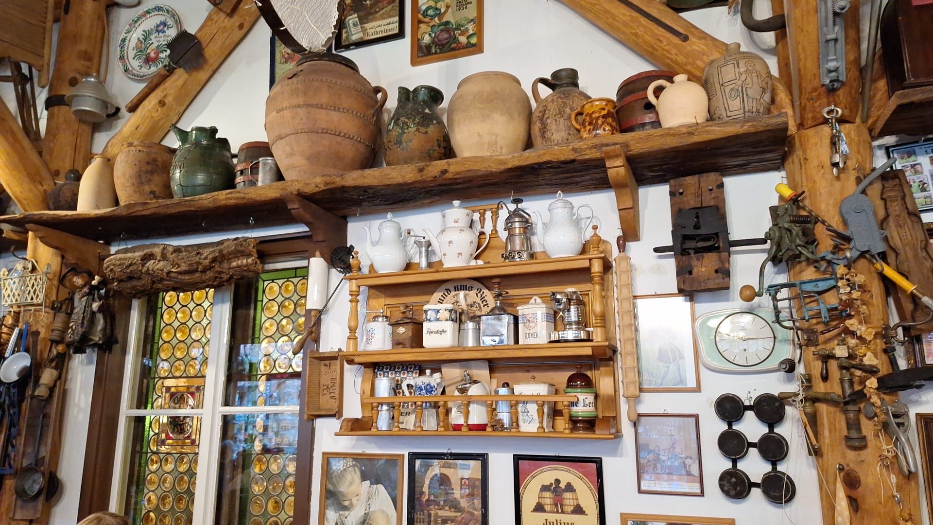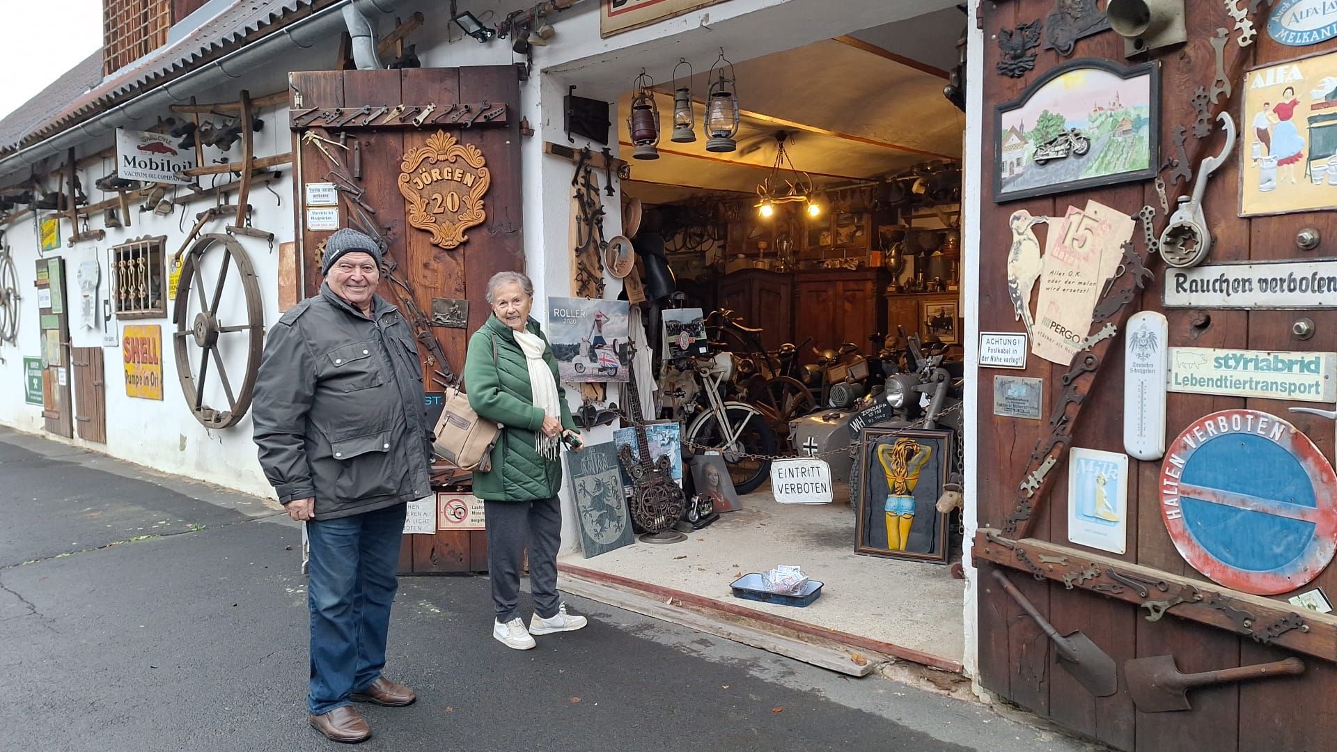 Eine köstliche Suppe wurde serviert, zwei „Ganslbuffets“ waren vorbereitet, alle genossen das vorzügliche Mahl, eine süße Nachspeise rundete den Mittagstisch ab. Beim gemütlichen Zusammensitzen danach wurde geplaudert, gelacht und fotografiert. Die ersten Mitreisenden begutachteten schon interessiert die unzähligen Ausstellungsstücke in den Gasträumen. Im Hof und Garten machten sie danach den Rundgang durch das große Ausstellungsareal, um in den einzelnen Museumsobjekten lebendige Unikate längst vergangener Tage zu besichtigten. Beim Spaziergang durch die einzelnen Objekte des Museums "Nostalgisches Landleben", kann man in das letzte Jahrhundert des Handwerks und des bäuerlichen Lebens der Südoststeiermark eintauchen. Viel zu schnell verging die Zeit und die Reisegruppe musste sich vom BULLDOGWirt in Hof verabschieden.