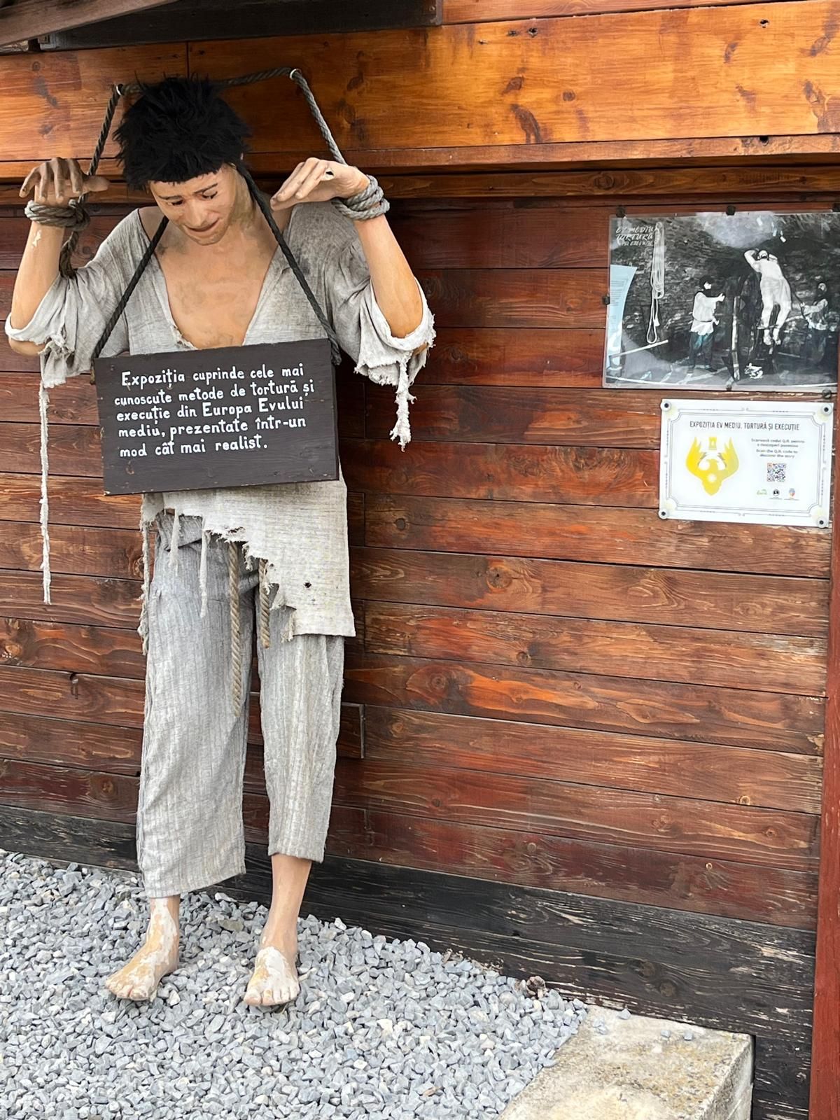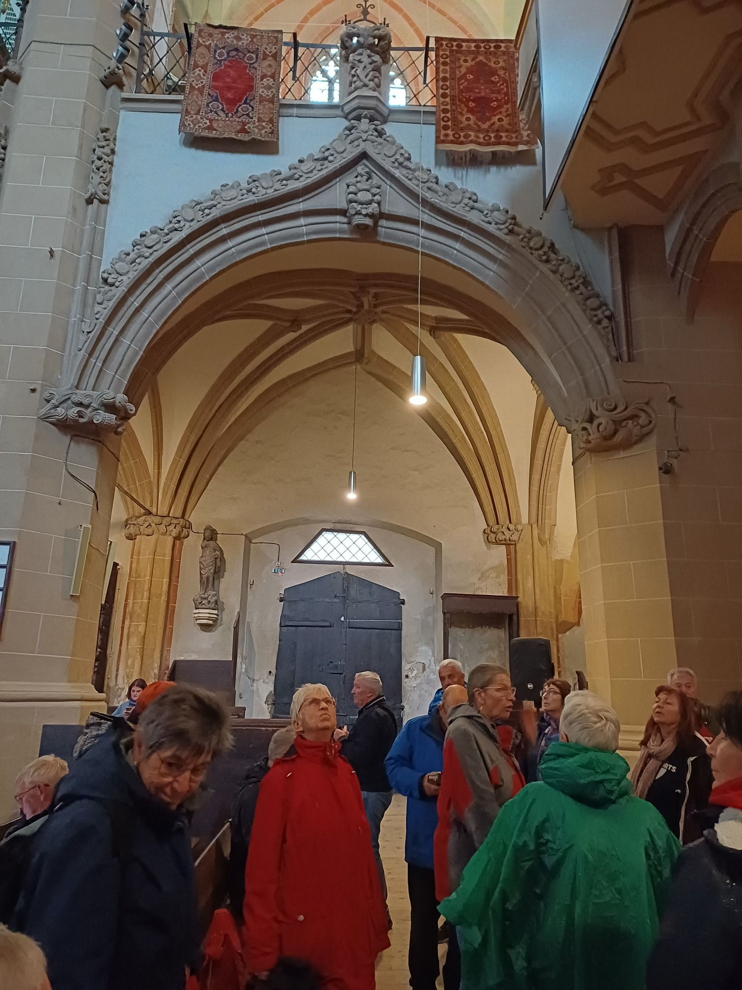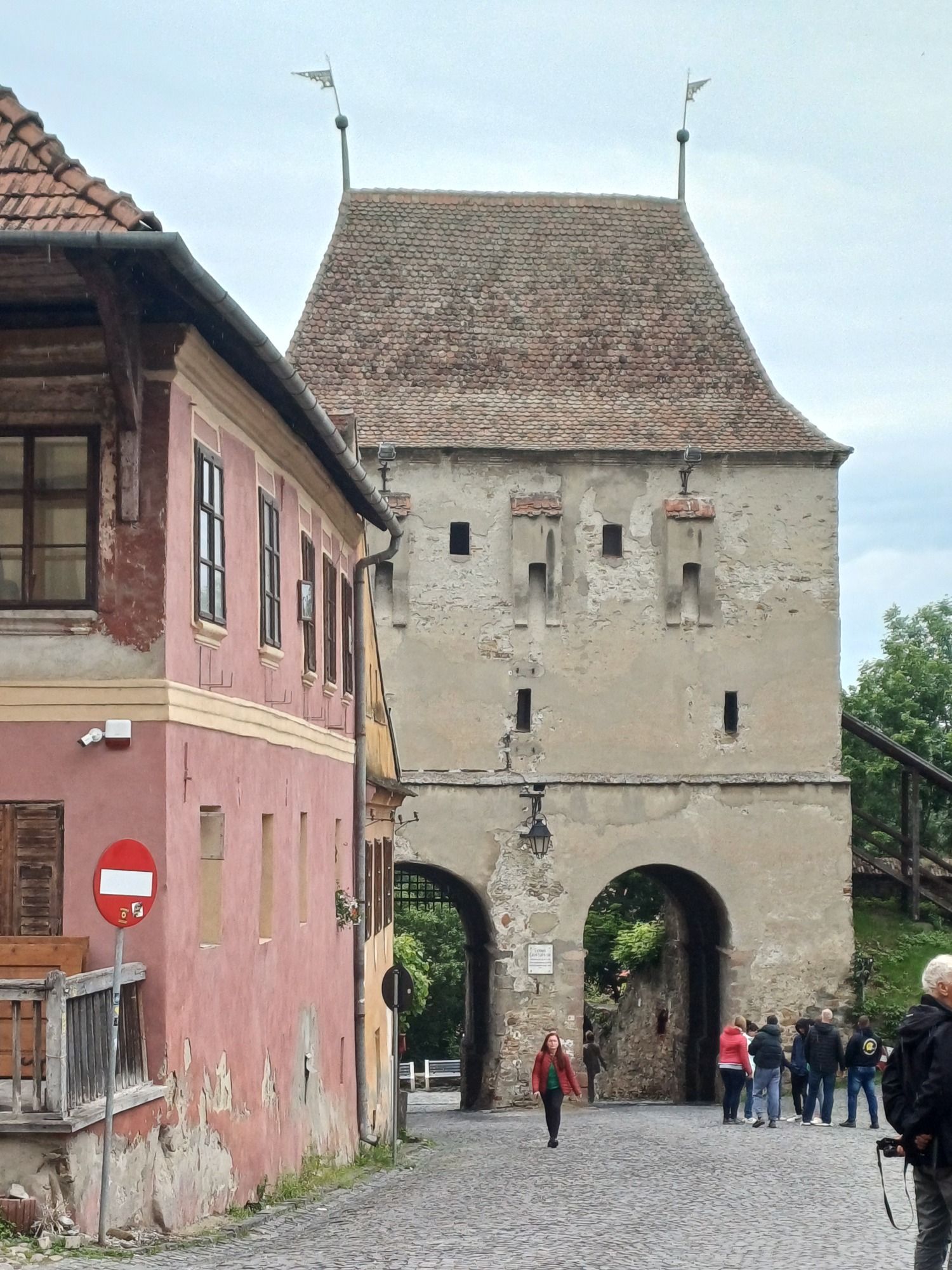 Es schüttete bei der Abfahrt in Predeal am nächsten Morgen. Über zwei Stunden dauerte die Busfahrt von Predeal nach Sighisoara, dem nächsten Programmpunkt. Aber – oh Freude – in Sighisoara angekommen regnete es nicht mehr und die Gruppe konnte bei trockenem Wetter die Stadt Schäßburg erkunden. Die Reiseführung bestellte kleine Stadtbusse, welche die Hornsteiner Gäste in das mittelalterliche, hochgelegene Stadtzentrum des UNESCO Kulturerbes brachten. Während der Führung erfuhren die interessierten Mitreisenden viel über die Stadt und ihre Sehenswürdigkeiten. Von oben hatte man einen wunderbaren Ausblick auf den Fluss „Große Kokel“ und die Unterstadt mit der schönen Orthodoxen Kirche. Der Stundturm, das Wahrzeichen Sighisoaras, konnte besichtigt werden. Er wurde in der zweiten Hälfte des 14. Jahrhunderts als Verteidigungsanlage des Haupttors der Burg und als Ratssitz errichtet. Sein heutiges Aussehen erhielt der Stundturm Ende des 17. Jahrhunderts, als am 30. April 1676 ein verheerender Stadtbrand, von der Unterstadt kommend, auch auf den Turm übergriff. Der Stundturm hat mit Wetterhahn eine Gesamthöhe von etwa 64 Metern. Die Mauerstärke beträgt 2,4 Meter im Erdgeschoss, die Höhe des Mauerwerks beträgt 39,5 Meter. Der Turm enthält fünf Stockwerke, im obersten Stockwerk ist der Turm von einer offenen Holzgalerie umgeben. Von oben hatte man einen wunderbaren Ausblick auf den Fluss „Große Kokel“ und Orthodoxe Kathedrale. Auch die Klosterkirche war einen Besuch wert. Angeblich soll Vlad Dracul Tepes in Schäßburg geboren worden sein. Ob das wirklich stimmt, weiß man nicht. Einige der Hornsteiner Besucher/innen ließen es sich nicht nehmen und besuchten das angebliche Geburtshaus Draculas. Angeblich hat er dort vier Jahre lang gewohnt, ob es stimmt, weiß man nicht. Sein angebliches Geburtshaus wurde in ein Restaurant umgewandelt, aber das obere Stockwerk beherbergt ein kleines Museum. In diesem Museum geht es schaurig zu, einfach zu viel Kitsch. Durch das alte Stadttor „Schneidertor“ verließ die Hornsteiner Gruppe die Oberstadt. Mit dem Bus ging es weiter zur nächsten Attraktion.