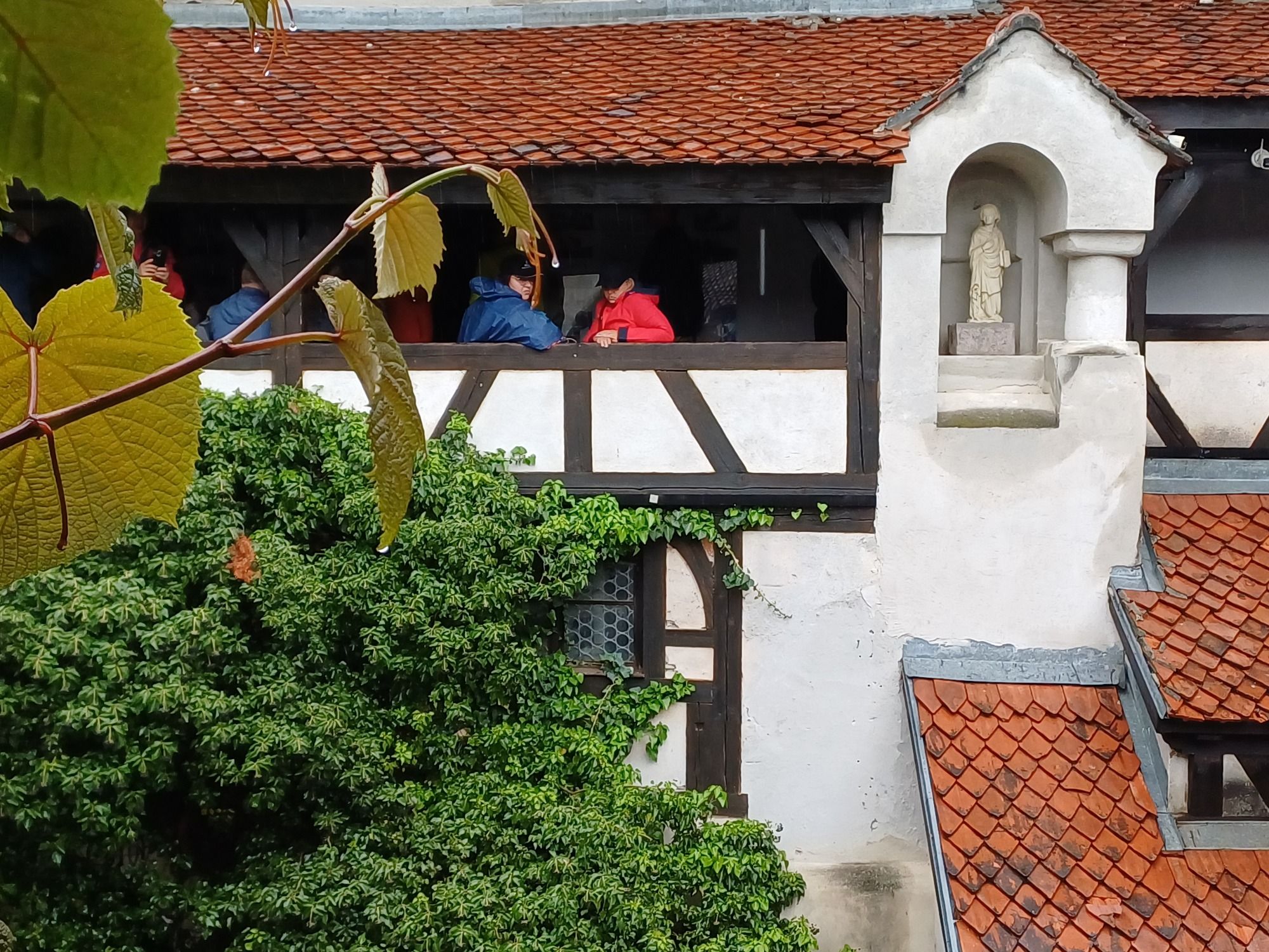 Als nächster Sightseeingpunkt stand der Besuch des Schlosses „Bran“ an. Eindrucksvoll ragt es seit dem Jahr 1388 auf einem Felsen über bewaldeten Hängen auf, mit zahlreichen Türmen. Nach knapp einer Stunde erreichte der Bus den Ort Bran mit der majestätischen, mittelalterlichen Törzburg. Es regnete wieder und der Weg bergauf zur „Burg des Dracula“ war steiler und steinig. Den steinigen Weg konnten nicht alle Hornsteiner Gäste begehen. Die Reiseführung verteilte die Eintrittskarten, der Weg führte bergauf, durch das Eingangstor konnte man den kleinen, üppigen Burginnenhof, einem charakteristischen Merkmal mittelalterlicher Bauten, mit dem alten Wasserbrunnen betreten. Spannend war die Begehung der geheimen Treppe, die im Schloss den ersten und dritten Stock miteinander verbindet. Der Zugang befindet sich versteckt hinter einem Kamin. Über die frühere Funktion des Geheimgangs ist nichts Konkretes bekannt; er wurde erst bei den Renovierungsarbeiten i1927 zufällig wiederentdeckt. Man konnte in etlichen Räumen prunkvolle Möbel und Kamine sehen. Schloss Bran soll die Heimat des Grafen Dracula gewesen sein. Denn wer kennt sie nicht, die Romanfigur des irischen Schriftstellers Bram Stoker. Auch für Gänsehaut und Schauer war im Schloss Bran gesorgt. Die Anwesenheit des Dracula war in einigen Räumen zu finden – wenn auch etwas kitschig. Bei Regen ging es wieder abwärts in Richtung Bus, in das Hotel Piemonte in Predeal. Um 19 Uhr wurde die Hornsteiner Gruppe zu einem geselligen rumänischen Abend mit Abendessen im Restaurant Rozmarin, einem Nachbarhotel, eingeladen. Auch gab es einige Male Bärenalarm via Handy. In Predeal gibt es fast täglich Bärenalarm. Nach dem Frühstück nächsten Morgen stand der fünfte und letzte Teil der Reise an.