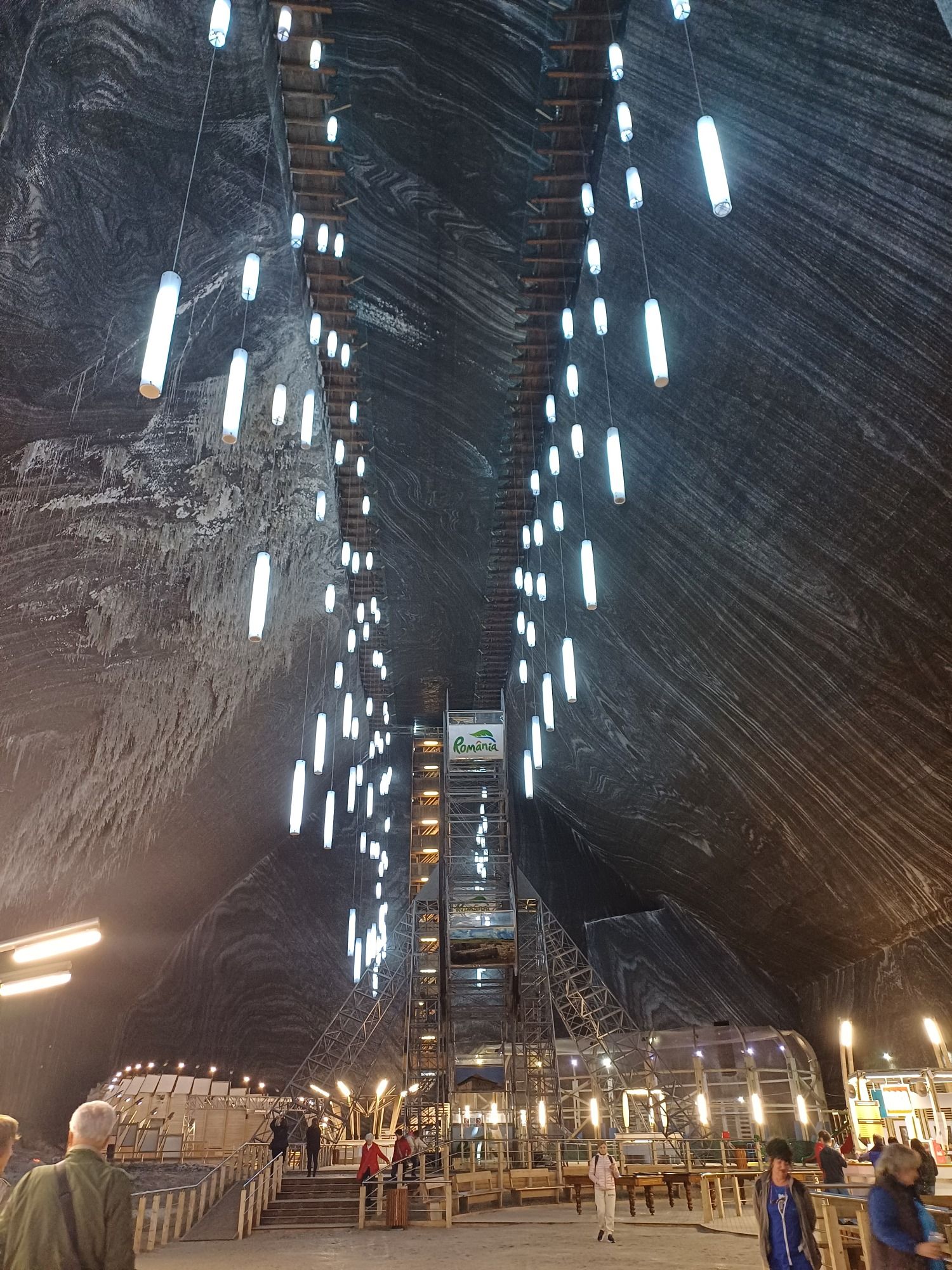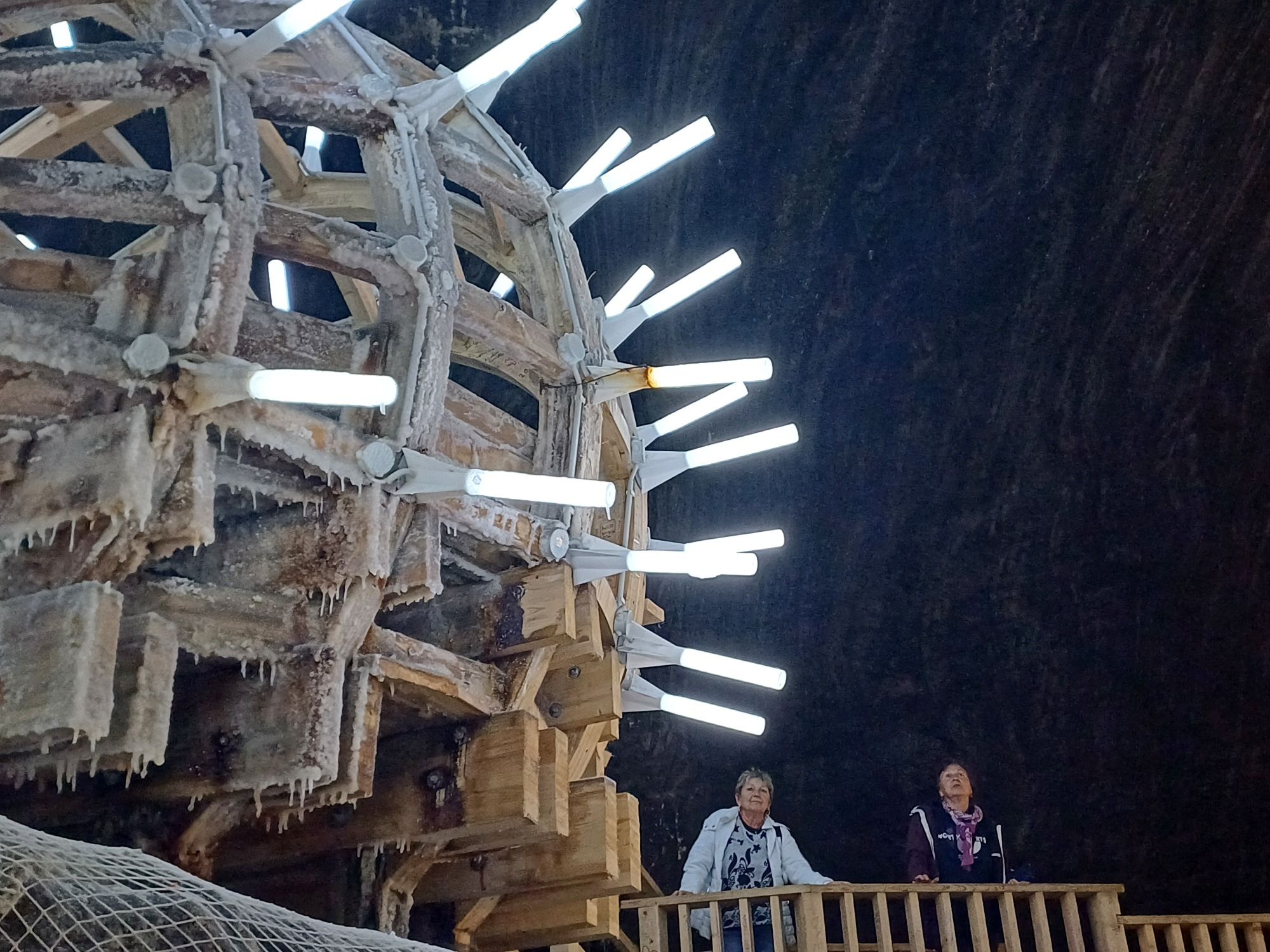 Nach ca. zwei Stunden erreichte die Reisegruppe die Stadt Turda mit ihren Salzminen. Das Turdaer Salzbergwerk (Salina Turda) ist ein ehemaliges Salzbergwerk im Kreis Cluj in der Region Siebenbürgen. Einige Schritte mussten vom Busparkplatz zum modernen Eingang der Minen gelaufen werden. Ein netter Herr führte die Hornsteiner/innen über unzählige Stufen in die Tiefe des ehemaligen Salzbergwerks und erzählte viel Wissenswertes. Ein Blick in den gigantischen Stollen mit über 120 Meter hohen Wänden, versetzte alle in Staunen. Wie leuchtende Ufos wirkten die Installationen, die sich beim Blick in das riesige Salzbergwerk von Turda mitten in einem See tummeln. Zu sehen war der tiefste Freizeitpark der Welt, in 120 Metern Tiefe, ein Freizeitpark mit einem 20 Meter hohen Riesenrad, einer Bootstour über den Salzsee, Kinderspielplatz und mit einer Minigolfanlage. Ein besonderes Erlebnis für alle, die mit in die Tiefe steigen konnten! Nachdem jede/r die vielen Stufen wieder hochgekommen war, brach die Gruppe zur letzten Etappe ihrer 6-Tagesreise auf, in das ****Hotel „Continental“ in Oradea. Erst nach über drei Stunden Fahrt erreichte man die Stadt Oradea und das moderne, sehr attraktive Hotel, wo auch das Abendessen eingenommen wurde.