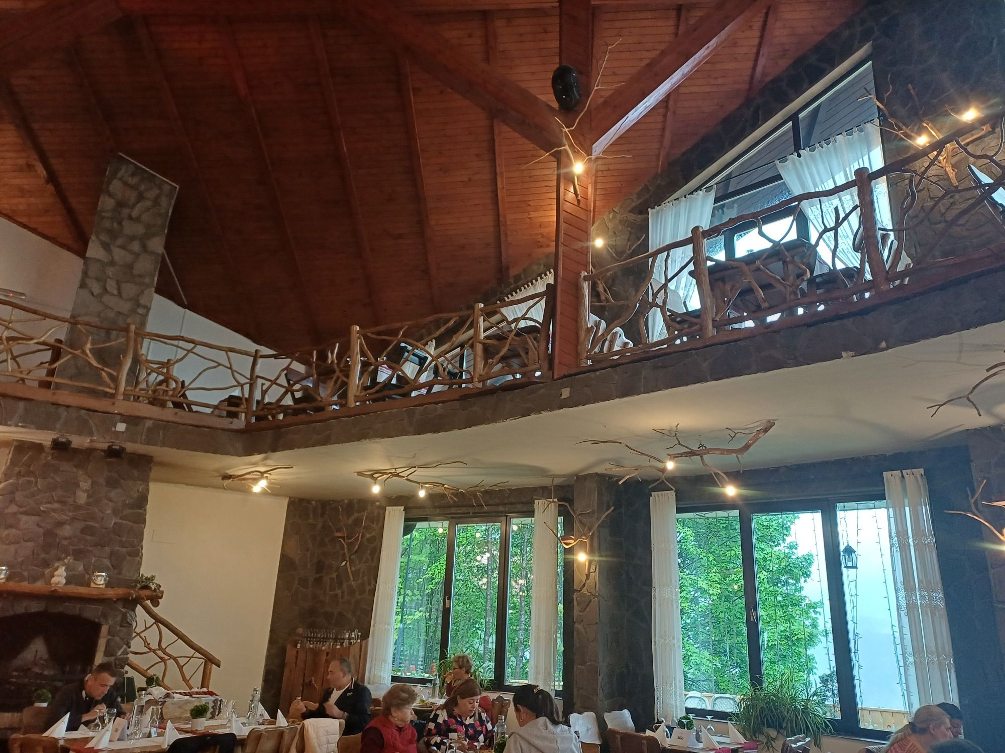 Die Stadtpfarrkirche befindet sich in Oberstadt und ist umgeben von Huetplatz und dem Hof des Brukenthal-Lyzeums, in dessen Mitte auch das Bischof-Teutsch-Denkmal steht. Während einer Mittagsrast konnte in einem der unzähligen Restaurants oder Kaffeehäuser das Mittagsmahl eingenommen werden. Zurück am Treffpunkt-Parkplatz führte der Weg weiter in den kleinen Ort Sibiel, ein zauberhaftes Dorf im Landkreis Sibiu, das Zuhause von siebenbürgischen Hinterglasikonen. Die altehrwürdige Kirche „Heilige Dreifaltigkeit“ wurde im Jahr 1765 errichtet und 10 Jahre später vom berühmten Maler Stan Zugravul aus Răşinari, mit Hilfe seines Bruders Iacob mit Fresken bemalt. Eine andere Sehenswürdigkeit in Sibiel ist das sogenannte Museum der Ikonen auf Glas. Hier können die Besucher Ikonen bewundern, die von Dorfbewohnern seit 1700 gemalt wurden. Ikonen sind religiöse Kultbilder, die in der orthodoxen christlichen Tradition eine wichtige Rolle spielen. Nach einer über zweistündigen Busfahrt erreichten die Hornsteiner/innen, leider bei strömendem Regen, die charmante und offenherzige Stadt Brasov, die wirtschaftlich und kulturell wichtigste Stadt in der Region Siebenbürgen. Brasovs berühmtestes Wahrzeichen, die monumentale Schwarze Kirche (Biserica Neagra), im gotischen Stil erbaut, erhebt sich über den Ratsplatz (Piata Sfatului) und die Altstadt von Brasov. Die größte gotische Kirche zwischen Wien und Istanbul stammt aus dem späten 14. Jahrhundert und erhielt ihren Namen vom Großen Brand von 1689, der die Kirche und einen Großteil der Stadt beschädigte. Und genau diese Kirche durften die Reisenden besuchen. Nachdem der Regen immer stärker wurde, entschied man sich in das gebuchte Hotel ****“Piemonte“ in Predeal weiterzufahren. Nach 50 Minuten wurde das Tagesziel erreicht, die Zimmer wurden für zwei Tage bezogen, später wurde das Abendessen eingenommen.