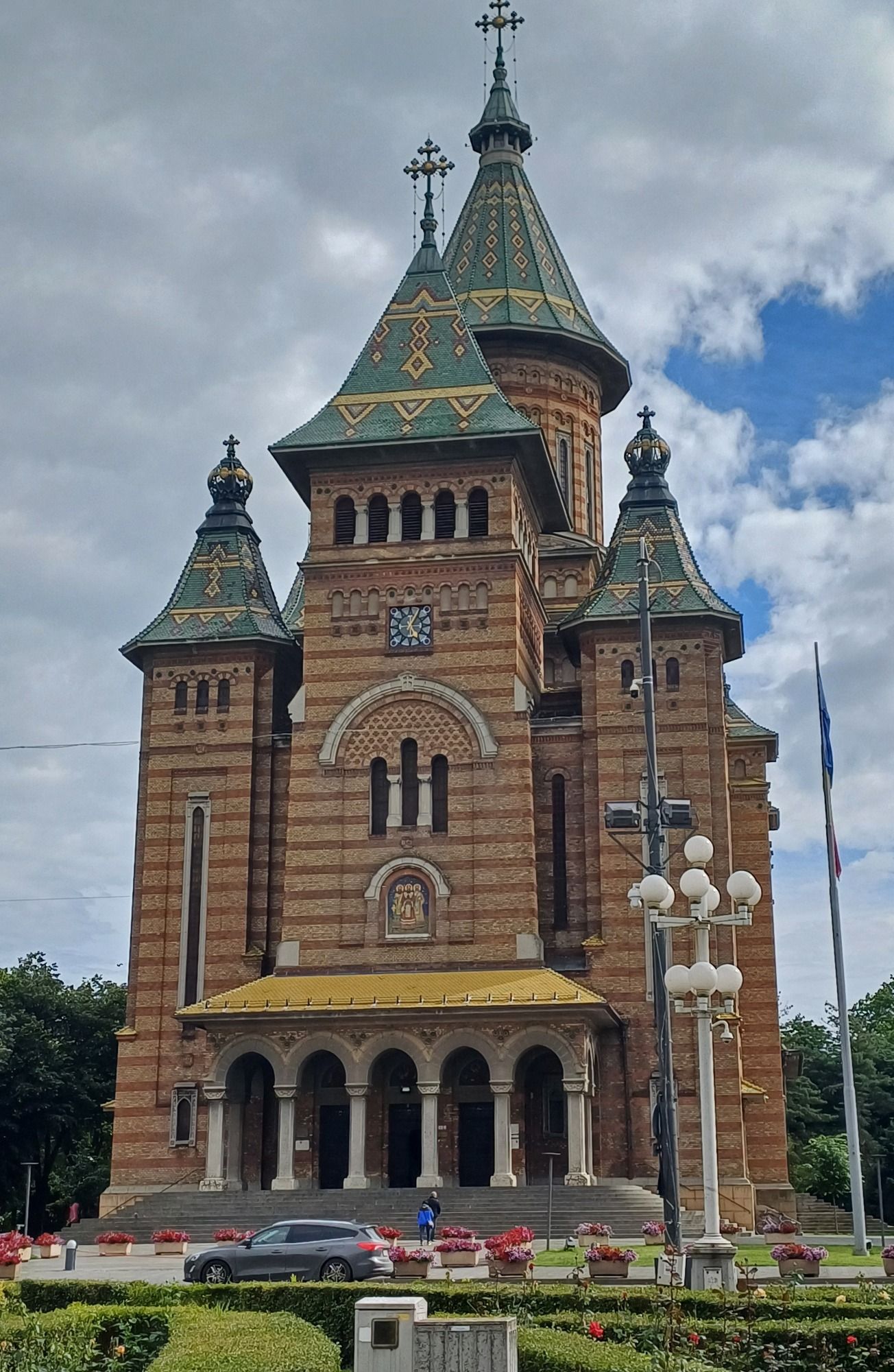 Um 7 Uhr Früh Start der Reise im k&k Bus mit Buslenker Peter - Hornstein - Temeswar. Auf der Autobahn führte die lange Strecke von 500 km über Sopron, Tatabanya, Budapest, Szeged und dem Grenzübergang Csanádpalota durch Ungarn. Vorbei an der rumänischen Grenzstadt Arad erreichte die Hornsteiner Gruppe nach ca. 1 Stunde die erste Station der Rumänienreise, die europäische Kulturhauptstadt von 2007 - Timişoara (Temeswar). Nach dem Zimmerbezug im modernen ****Hotel Lido und der Begrüßung durch die Reiseführung Frau Karla, spazierte die Gruppe bei Sonnenschein in das Stadtzentrum, zum „Piața Victoriei (Siegesplatz)“ auch „Piața Operei (Opernplatz)“, die bekannteste Flaniermeile der Stadt. Die denkmalgeschützte Rumänisch-Orthodoxe Kirche „die Kathedrale der Heiligen drei Hierarchen“ (Catedrala Mitropolitană) erhebt sich stolz als Symbol des Glaubens und architektonischer Pracht im Herzen von Timișoara und beeindruckte die Besucher/innen sehr. Sie ist den Heiligen drei Hierarchen Basilius dem Großen, Gregor von Nazianz und Johannes Chrysostomos geweiht, wurde von König Michael I. gestiftet und in der zweiten Hälfte der 1930er Jahre errichtet. Die Ikonostase ist eine goldbelegte Ikonenwand mit einer Fläche von 135 m² aus Lindenholz geschnitzt. Nach einem schmackhaften Abendessen und Nächtigung, folgte am nächsten Tag der 2. Teil der Reise.