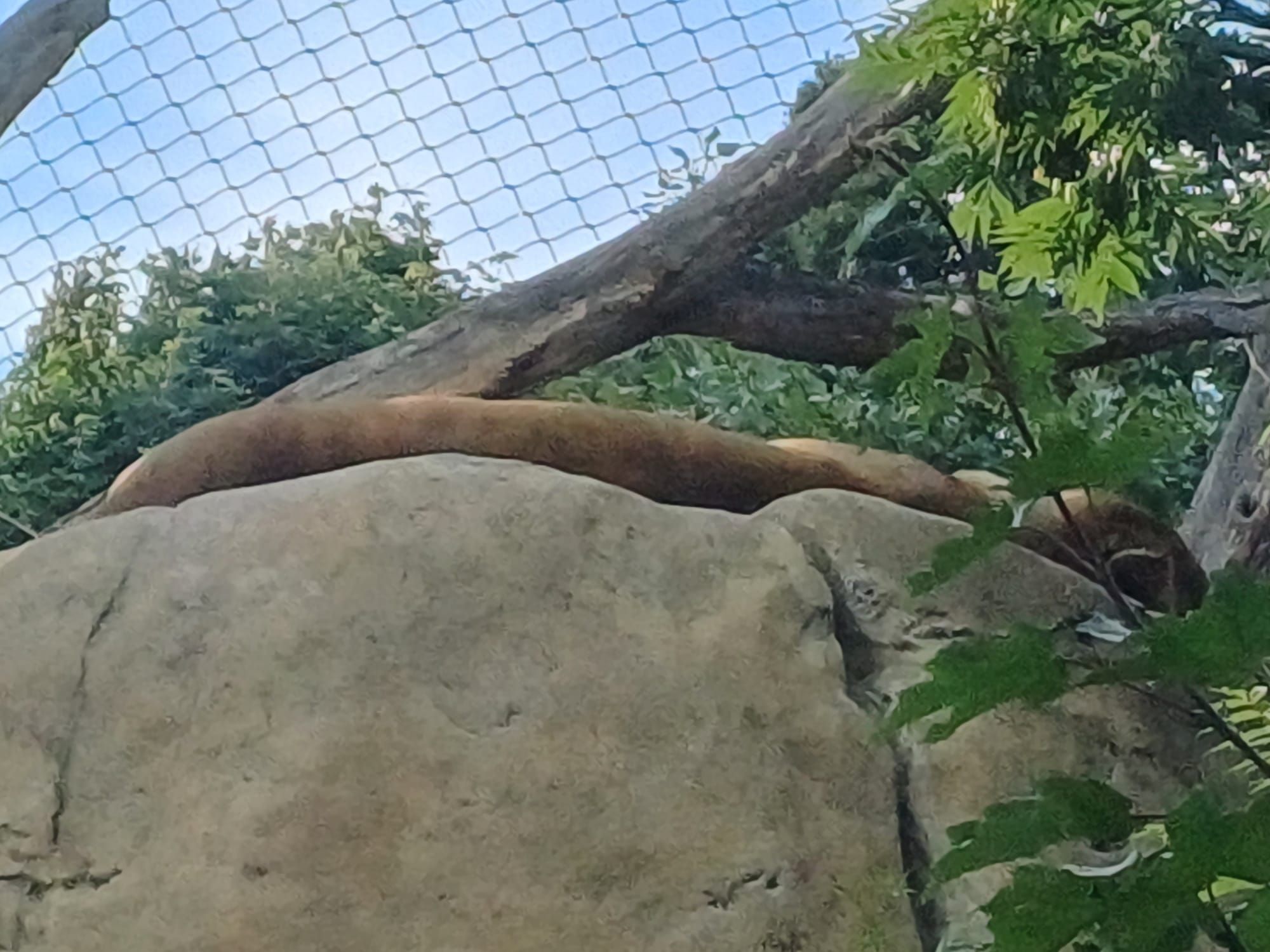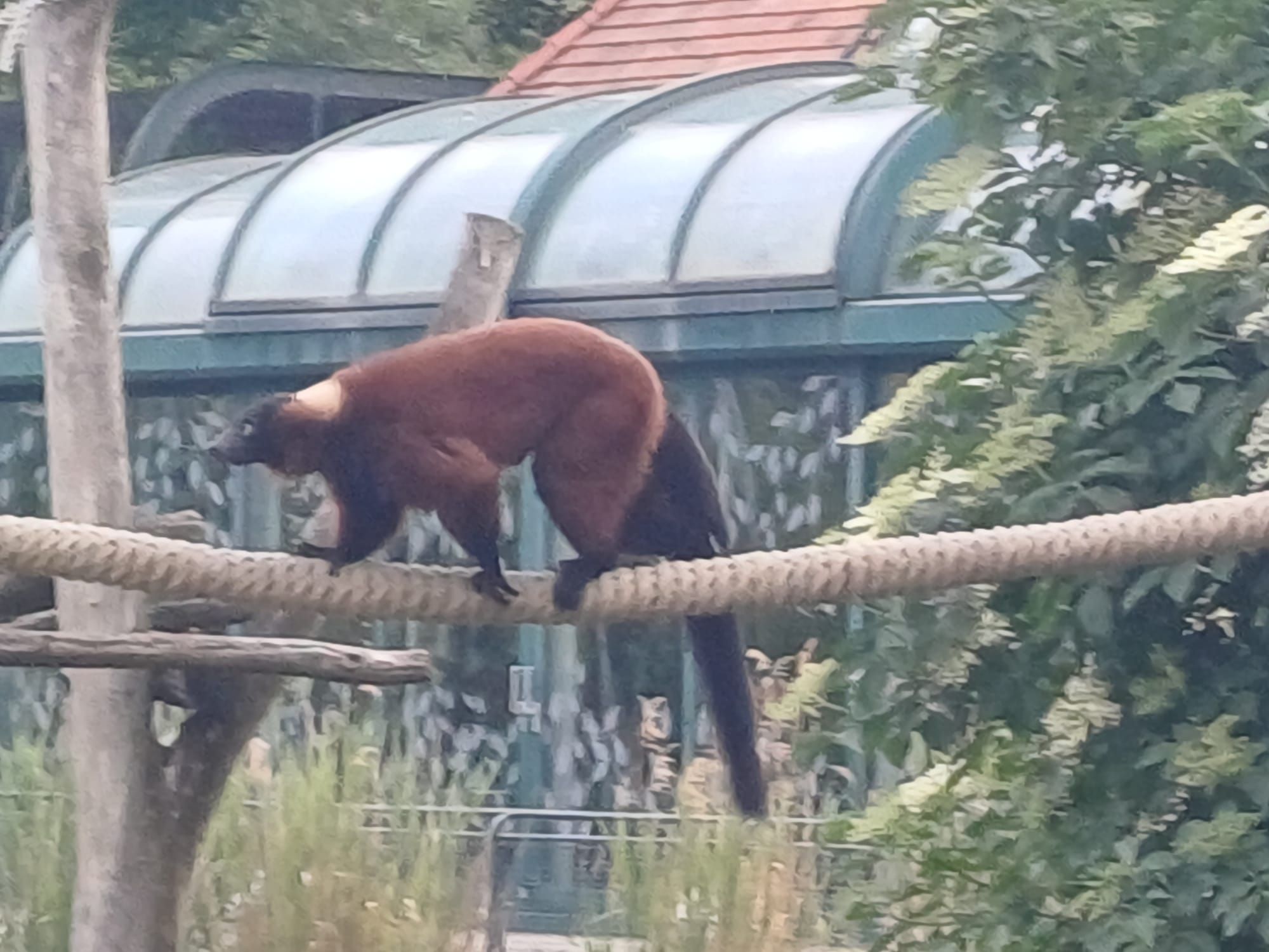 Weiter führte der Weg zu den Antilopen und Kudus, vorbei am Heim der eben neu zugezogenen Großen Pandas, der Residenz der Flusspferde und des wundervollen Sibirischen Tigers, der bereits in Schlaflaune war. Auch die Löwen genossen schon die Abendruhe und ließen sich nicht stören. Es wurden Präriehunde, Wasserschweine (Capybara) und Ameisenbären besucht, sowie das große Gehege der imposanten, kräftigen, muskulösen Eisbären. Eines der beiden drittgrößten Landbeutegreifer der Erde begrüßte die Gruppen, der andere Eisbär zog es vor bereits zu ruhen. Voll verspielt war der Rote Panda (Kleiner Panda), er nutze die Abendruhe, um herumzutollen und sich von Ast zu Ast zu schwingen.